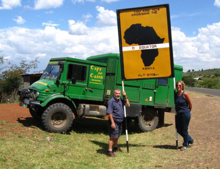 After many episodes, mistakes, learning curves, fun, excitement and laughter, the idea of essaying ‘Cape to Cairo’ became a reality when Alan bought a Unimog cab and chassis and built up a proper overlander vehicle. We took a year off – Alan left his business with a ‘trusted manager’ and I passed my clients into the care of a fellow graphic designer. We dived in Lake Malawi, trekked the gorillas in Uganda, watched the sunset over the Ngorogoro Crater – and too much more to detail in this short space. Let’s not forget that Alan was over 60 at the time!